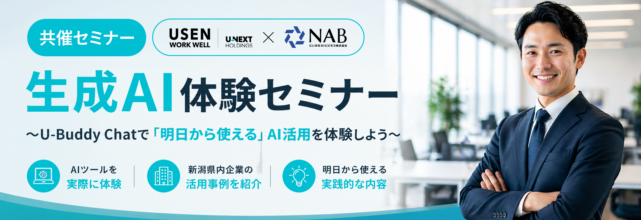 本セミナーは、USEN WORK WELL × にいがたAIビジネス株式会社の共催で実施します。
